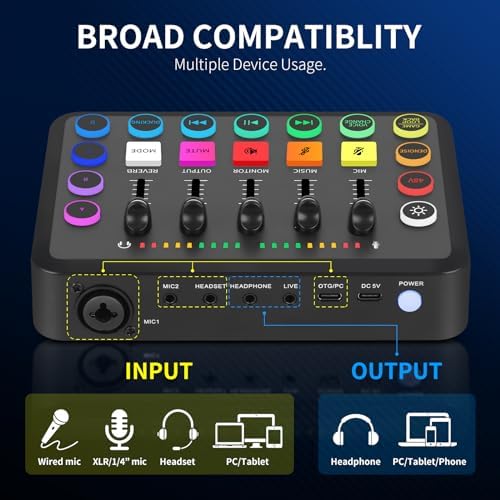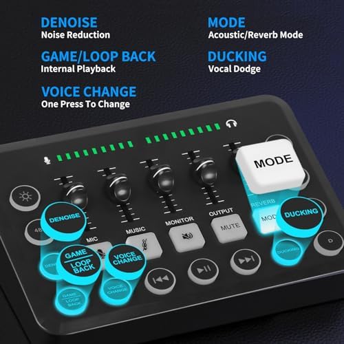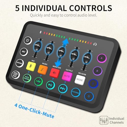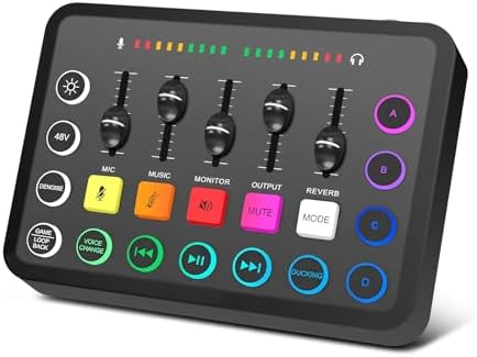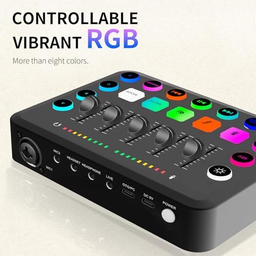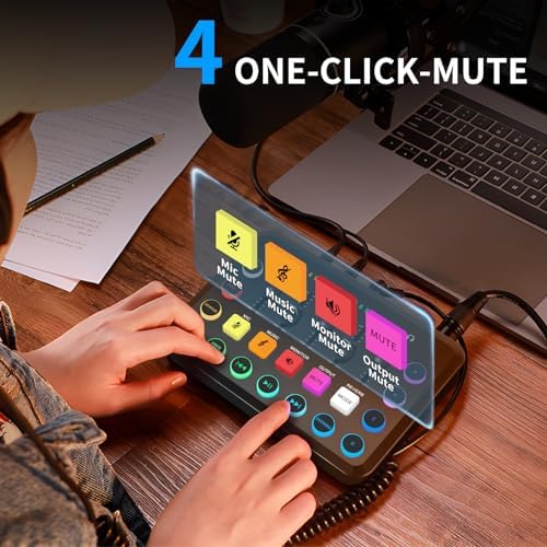 **XTUGA Carte Son PC avec Table de Son Effets Vocaux et Mute – Mixeur Audio de Jeu Interface Audio Rechargeable pour l’Enregistrement de Contrôle Individuel, F11**